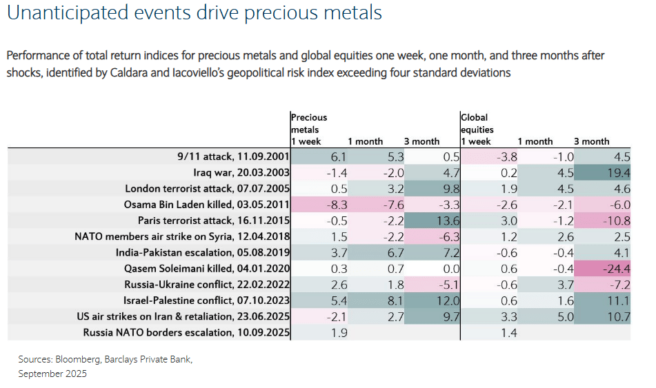 Smaller or more localized events don’t move the needle as much, but major global shocks clearly reinforce gold’s reputation as a go-to safe haven when uncertainty rises.
